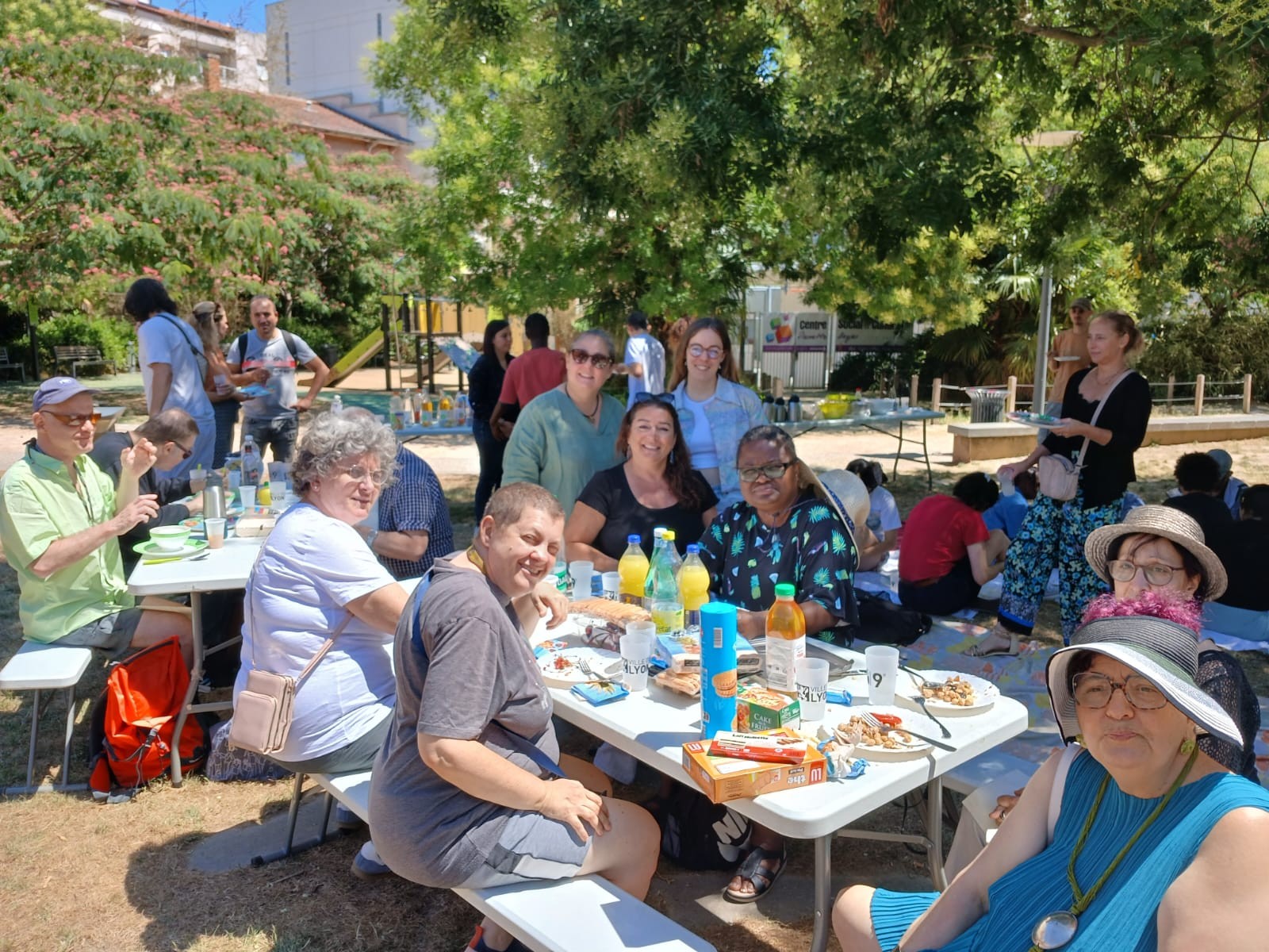 🌳 C’est au parc de la Roquette que les participants se sont retrouvés le 9 juillet 2025 pour un grand pique-nique Inclusif. Le buffet a été confectionné par toutes les associations présentes et les élus du 9ème . 🎶 Après le repas partagé, les enfants de l’IME le bouquet ont chanté en signant, accompagnés de Colette du Club qui a appris une chanson en Langue des Signes Française. 🖍️ Rémi du club a proposé un atelier dessin avec concours pour gagner ses BD. 😊 La Maison des Aveugles avec Benoît qui fréquente le club ont fait une démonstration d’écriture en braille grâce à sa machine. Quelques parents d’enfants étaient présents ainsi que des citoyens du quartier, des familles, enfants… Les participants ont apprécié la visite de Madame le Maire du 9ème – Anne Braibant, accompagnée de chargés de missions et responsables du centre social de Valmy. 🤗Rencontres, rires, solidarité, échanges. Du bonheur avant les vacances ! 💥 Tous motivés pour reprendre le Collectif au mois d’octobre et travailler ensemble sur un nouveau projet pour 2026